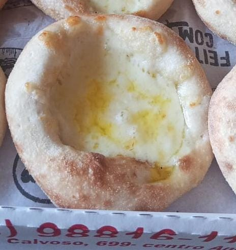 Deliciosa Esfiha Com Massa Fofinha, Mussarela, Pernil desfiado com molho barbecue