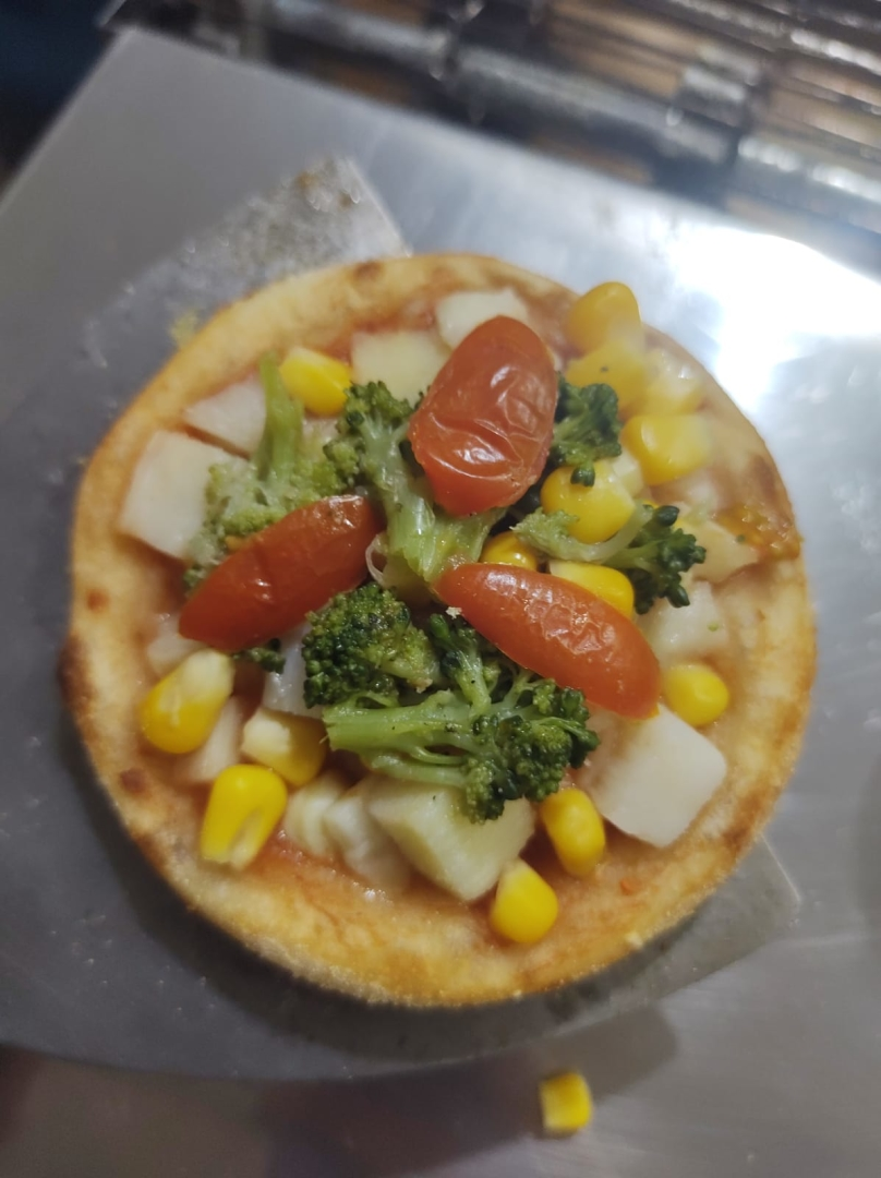 Deliciosa Esfiha Com Massa Fofinha, Molho DE Tomate, Brócolis, Milho, Ervilha, Palmito, Tomate E Alho Frito.