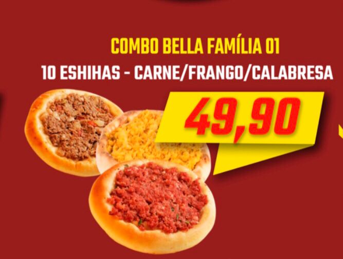 2 Esfihas de carne com mussarela 2 Esfihas de frango com mussarela 2 Esfihas de calabresa com mussarela 2 Esfihas de mussarela com alho 2 Esfihas de pizza + 1 Vencetex 2lts